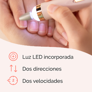 Una de las características más destacadas de Flawless Salon Nails es su versatilidad. Con su luz LED incorporada, puedes ver cada detalle para una precisión absoluta, incluso en las áreas más difíciles de alcanzar. Además, cuenta con dos velocidades y dos direcciones de rotación para que adaptes el proceso a tus necesidades. Comienza con la velocidad baja para un control delicado y alta para un trabajo más rápido en áreas más grandes.